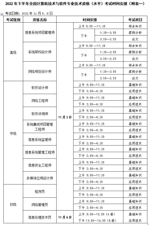 2022年下半年全國計算機技術(shù)與軟件專業(yè)技術(shù)資格(水平)考試(初級、中級、高級)將于11月5、6日舉行,現(xiàn)將云南省2022年下半年考試報名具體事項通知如下。
