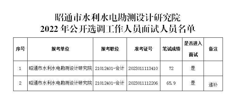 1.昭通市水利水電勘測設(shè)計研究院2022年公開選調(diào)工作人員面試人員名單