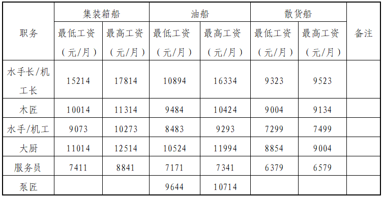 工資詳見(jiàn)下表(視船型及船舶大小而各有不同)。