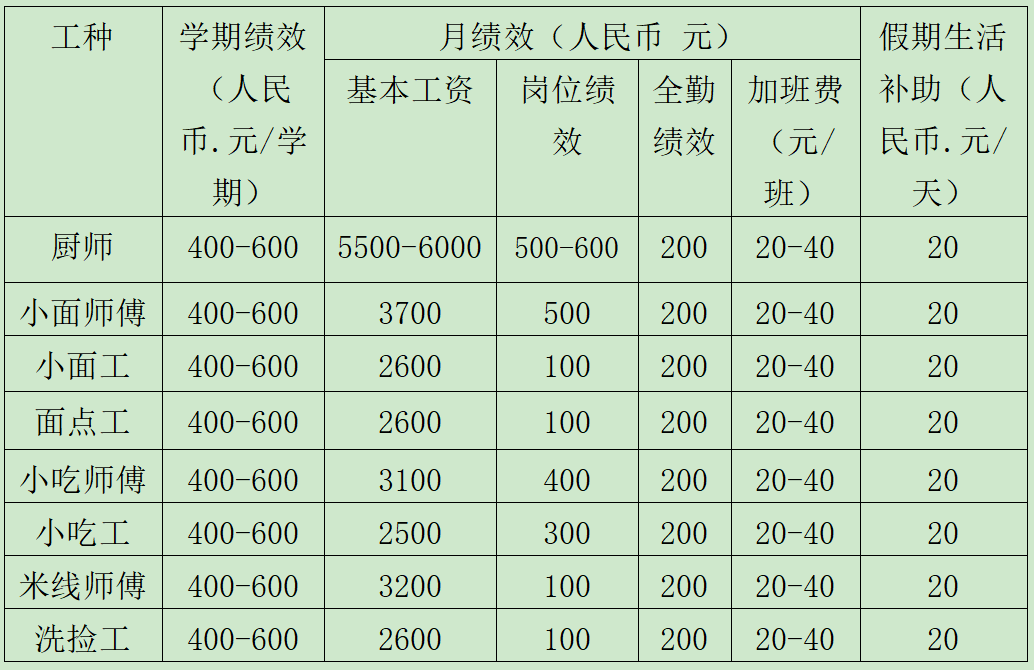 8. 以上工作崗位必須服從學校領導和主廚的工作安排。
