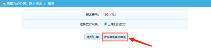 1.滿足減免條件的報考者應(yīng)在生成訂單完成繳費前提交“政策減免費用申請”,已完成繳費的無法辦理費用減免。