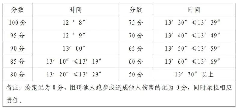 2.跑步100米,占比實(shí)操成績滿分的30%。