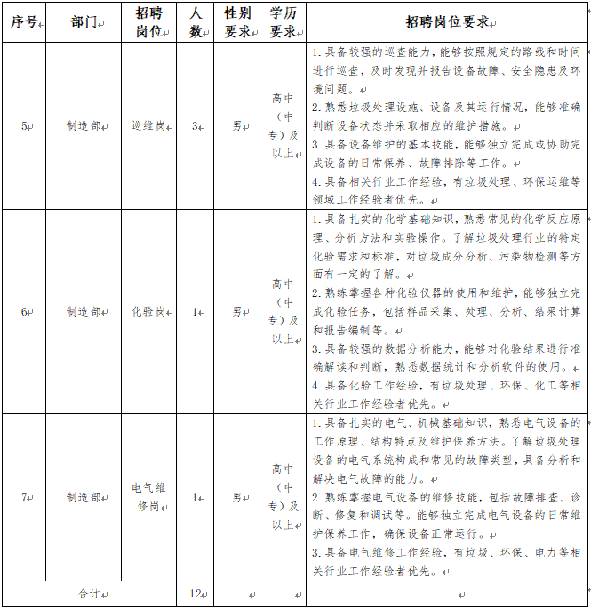 3.身體條件:身體健康,無恐高、高血壓等不適合一線生產(chǎn)崗位工作的疾病,具備一定的體力和耐力,能夠適應(yīng)垃圾處理現(xiàn)場的工作環(huán)境。