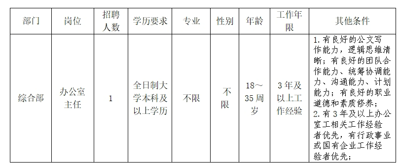為加強人才隊伍建設,優(yōu)化專技人員結構,結合公司工作實際,計劃公開招聘辦公室主任一職,為確保公開招聘工作順利進行,現將有關事項公告如下: