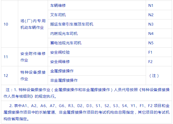 特種設(shè)備安全管理人員、叉車司機(jī)、起重機(jī)司機(jī)、起重機(jī)指揮、壓力容器、鍋爐、氣瓶充裝、電梯安裝與維修、觀光車、客運(yùn)索道操作與修理、大型游樂設(shè)施操作與維修等等。