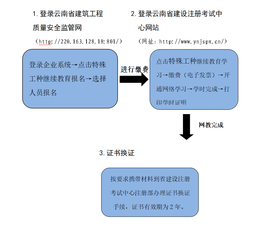 云南省建設廳塔式起重機司機、信號司索工繼續(xù)教育報名學習流程圖